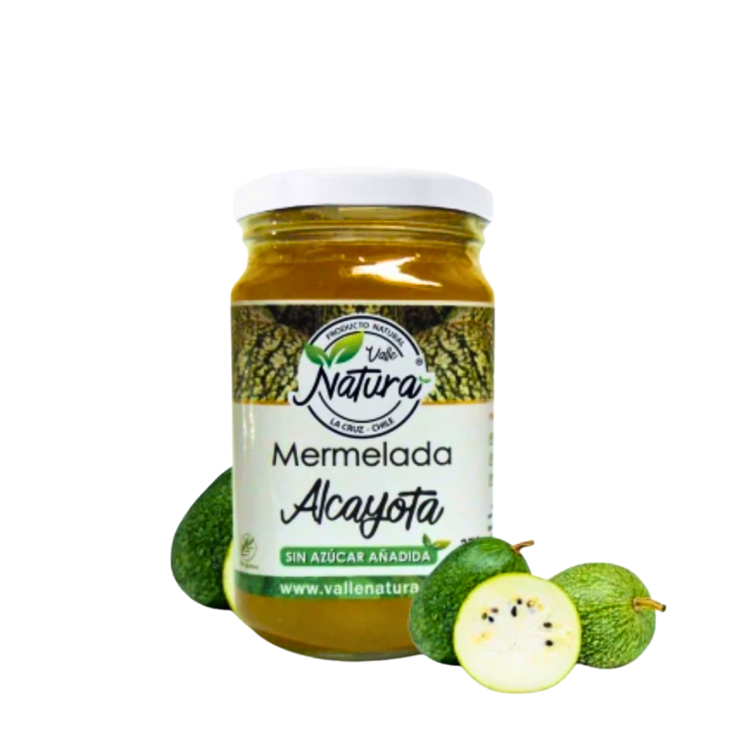 Desde la región de Valparaíso nos llegan estas deliciosas y artesanales mermelada de Alcayota «Sin Azúcar Añadida». 100% pura fruta natural, endulzada con jugo de fruta. Mermelada Sin Sellos para disfrutar sin culpa, además de ser un producto LIBRE DE GLUTEN.
